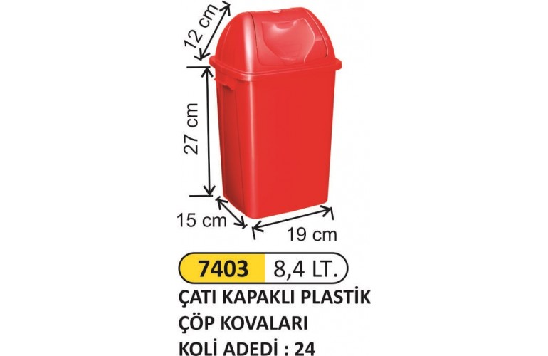 ÇATI KAPAKLI ÇÖP KOVASI PLASTİK 8.4 LT 7403