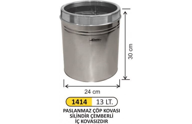 OFİS ÇÖP KOVASI PASLANMAZ ÇEMBERLİ 13 LT 1414