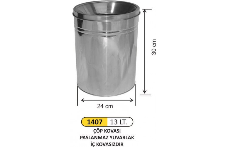 OFİS ÇÖP KOVASI KAPAKLI PASLANMAZ 13LT 1407